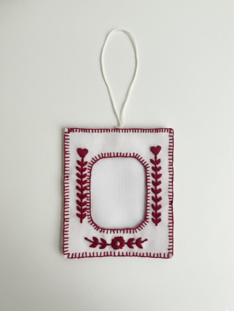 A soft white fabric frame, hand-embroidered with hearts and delicate leaves, our Little Memory Polaroid Frame is made to cradle a moment captured in time. Hang it where love lives – on walls, door knobs, or in your car. Because some memories deserve to exist outside screens.